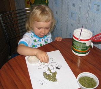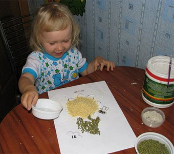 Замечательный вид детского творчества, пока мама занята на кухне - рисование крупой. Крупа подойдет любая, какая найдется. Малыши любят возиться с мелкими предметами, а уж возможность покопаться в зернышках точно не упустят! Для работы понадобится любая крупная раскраска либо рисунок от руки, клей ПВА, крупы и 5-10 минут свободного времени.